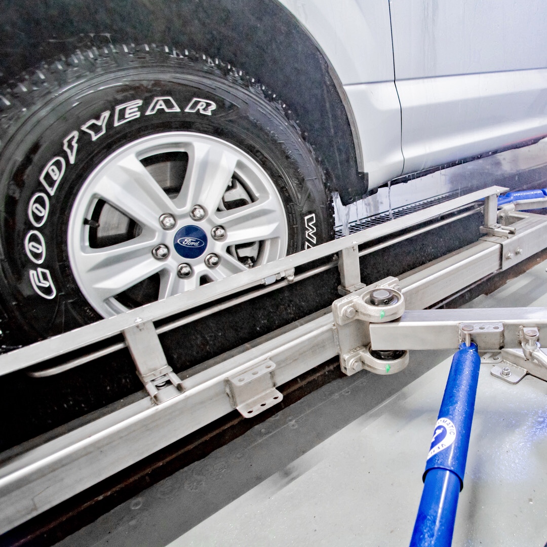 The AVW Tire Washer is low profile, operates under most mitter curtains. Air retract option is available.